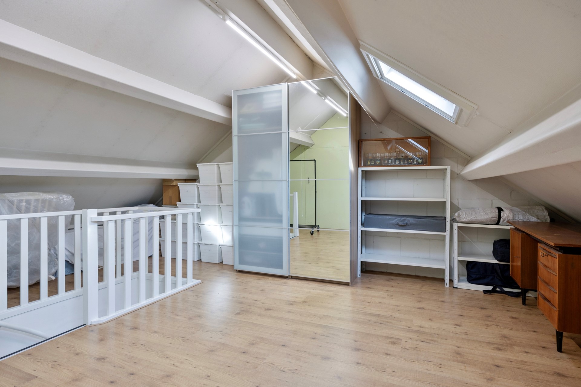 Vaste kast met opstelling CV-ketel (Remeha HR-combiketel 2012) en unit mechanische ventilatie. Deze zolder geeft voldoende gelegenheid tot het creëren van een extra slaap- werkkamer door het plaatsen van een wand en bijvoorbeeld een groter dakvenster.